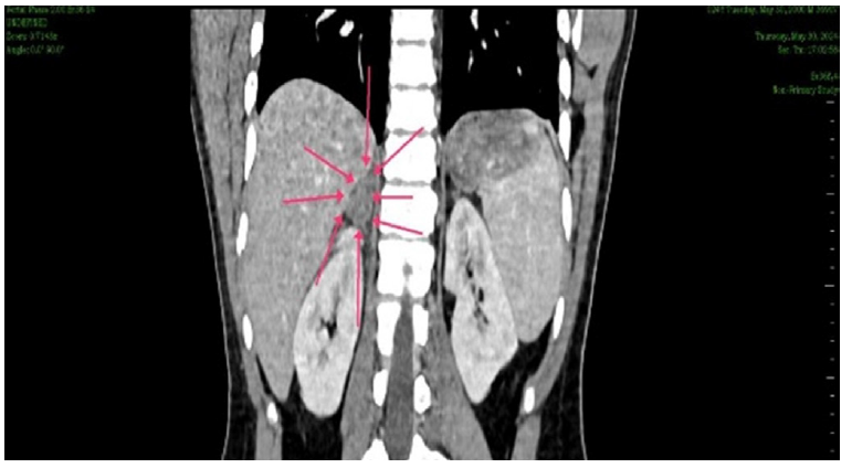 Trauma is the leading cause of morbidity and mortality in younger populations worldwide, largely due to the rising population.1 It results in significant loss of workforce and human resources. Approximately 33% of all trauma patients sustain abdominal injuries, which require triaging for appropriate management. Among these, about 25% necessitate surgical intervention.2 Adrenal glands injuries are rare due to their small size, deep location in the retroperitoneum, and protection by the paraspinal muscles, rib cage, and liver.3,4 At autopsy, post-traumatic adrenal haematoma is seen in up to 25% of severely traumatized patients.5 Management may be surgical or conservative, depending on the extent of injury and the patient’s haemodynamic stability.3,6 The first report of an adrenal haematoma was documented in 1670 by Griselius of Vienna, according to Sevitt. Post-traumatic adrenal haematoma is an extremely rare condition, occurring in only 0.03%-2% abdominal trauma cases.7 It is most often associated with severe shock and concomitant injuries, and is unilateral in 75-90% of cases.8